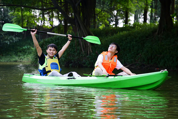 皮划艇课程体验既具备常规拓展训练的紧张刺激,又带有水上活动特有的娱乐性,